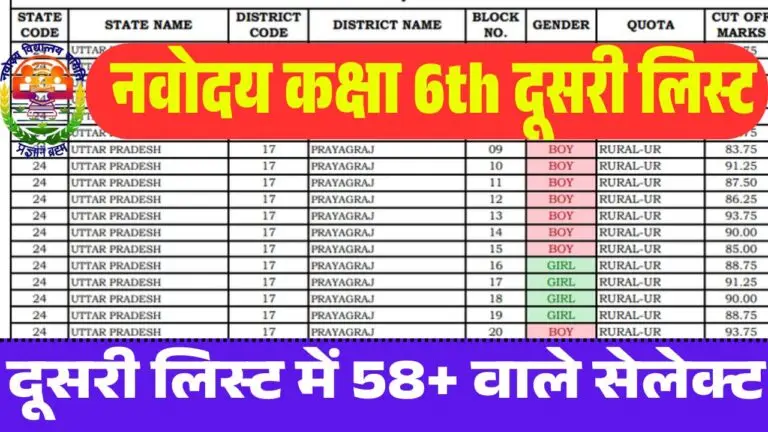 यह लिस्ट जिला और क्षेत्र के हिसाब से अलग-अलग होती है। JNVST Navodaya 2nd List Class 6th 2026 में रोल नंबर, नाम और रैंक के साथ जानकारी दी जाती है।